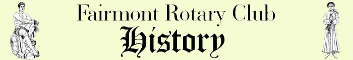 Rotary in Fairmont began with a conversation between Harold D. Wade and Frank Durga early in the year 1922. On March 27th of that year, a meeting of 21 selected individuals decided to make formal application for membership in the International Association of Rotary Clubs. On April 3rd, 1922, the following were elected officers: President, Harold E. Wade; Vice President, W. Lester Webb; Secretary, Robert H. MeCune; Treasurer, Seymour F. Durga; Sergeant at Arms, Morits C. Mourtisen. Directors were: John F. Haeckel, Thomas H. Curtis, and Roscoe C. Hunt.